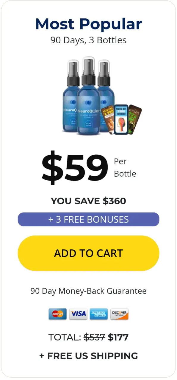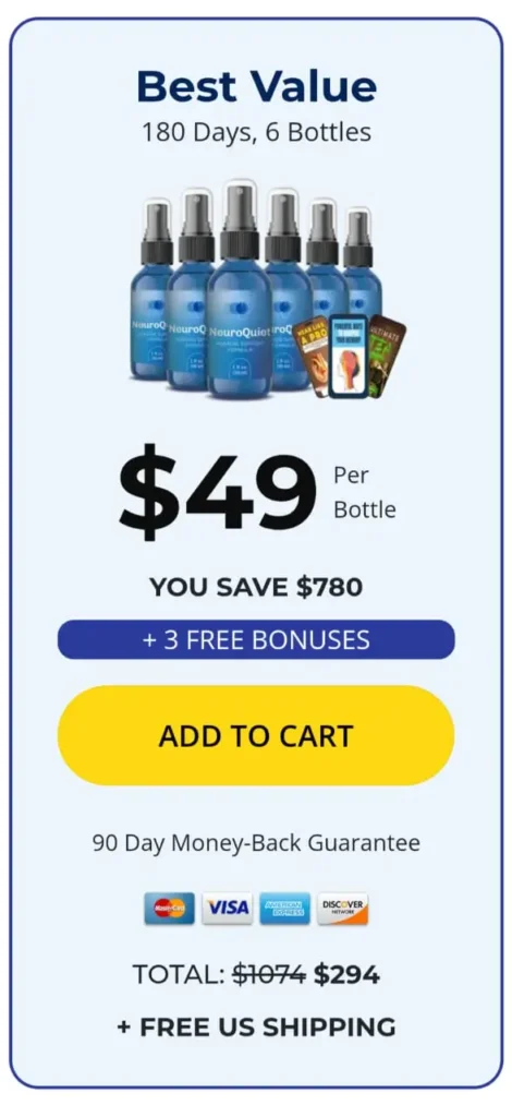 If you’re tired of living with tinnitus and want a natural, safe, and proven solution, NeuroQuiet could be exactly what you’ve been searching for. Its unique formula, based on cutting-edge science, is designed to target the root cause of tinnitus and restore balance to your nervous system effectively and quickly.